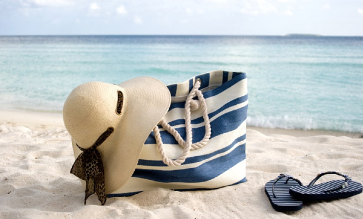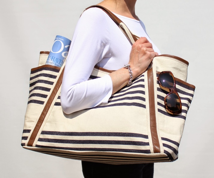 - Canvas beach bags are very popular today. They are distinguished by their spaciousness and ease. They can put a large towel, removable slippers, sunglasses, cosmetics for sunbathing and other necessary things for rest.