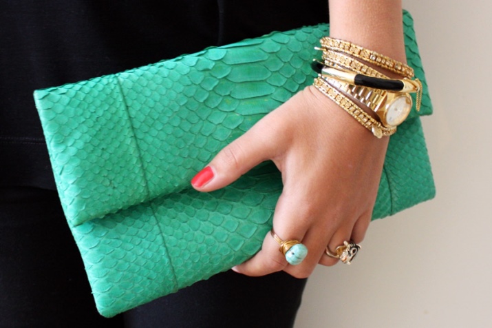 Far from every girl can afford a large python bag. Therefore, models of small purses, cosmetic bags and clutches are very popular. And the compact accessory with a snake ornament is not so striking. With bags of large volume, you should be more thoughtful - the accessory must be suitable in color and style, otherwise an expensive thing risks looking ridiculous.