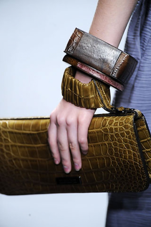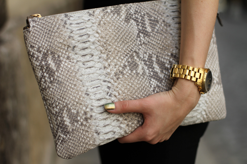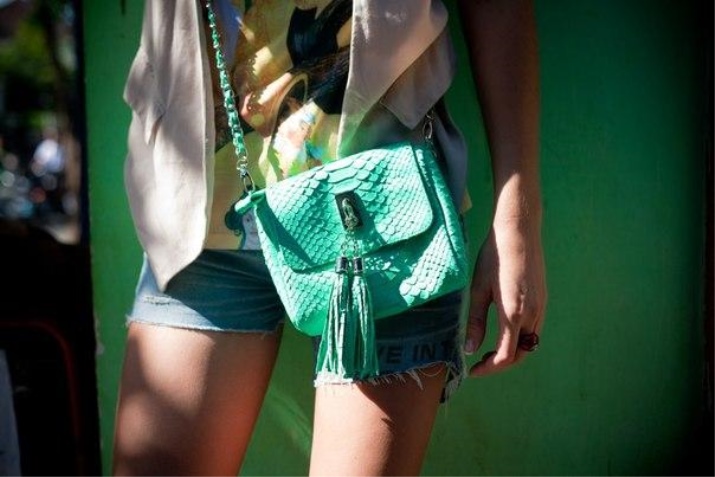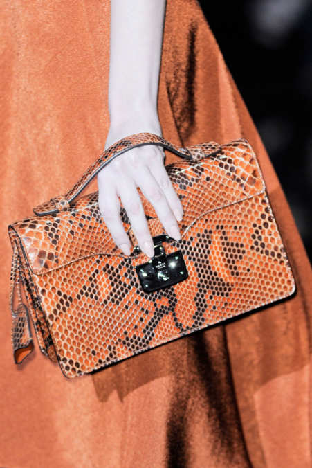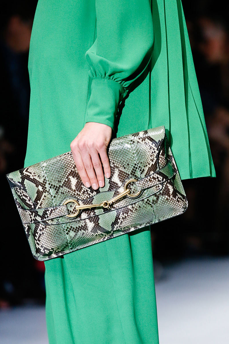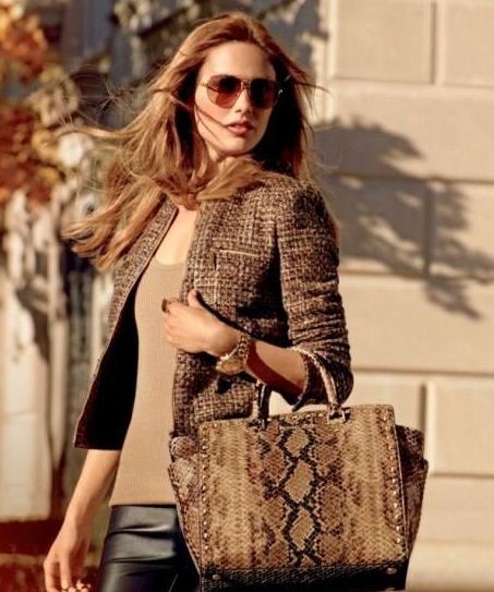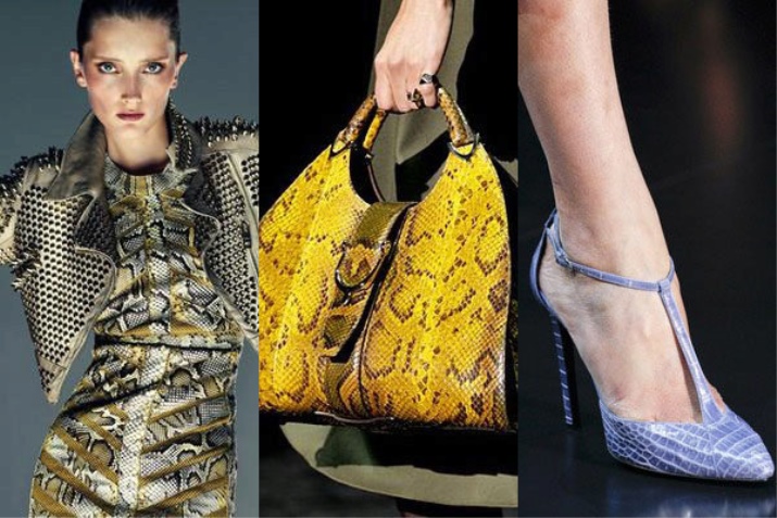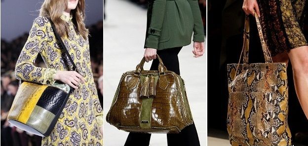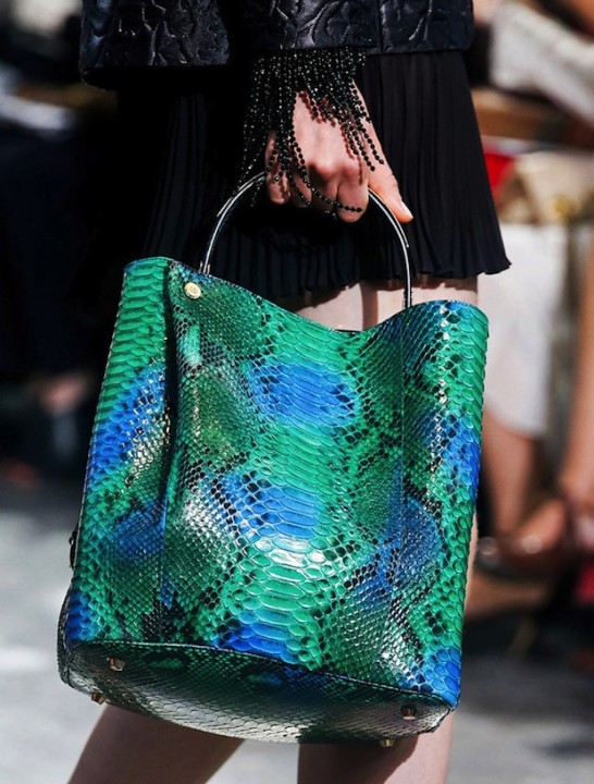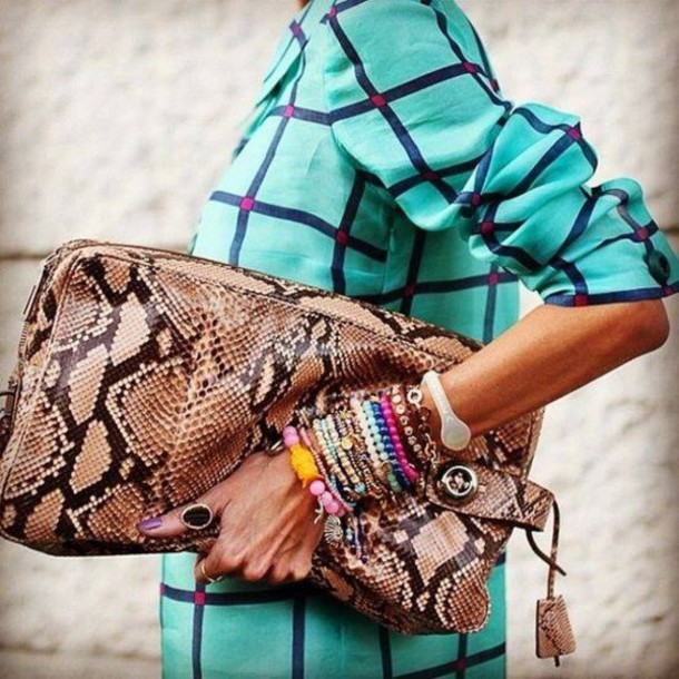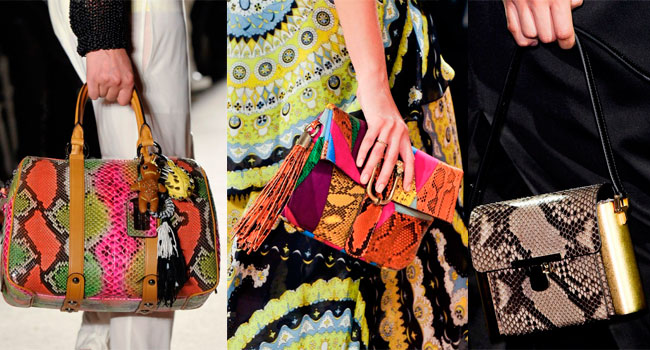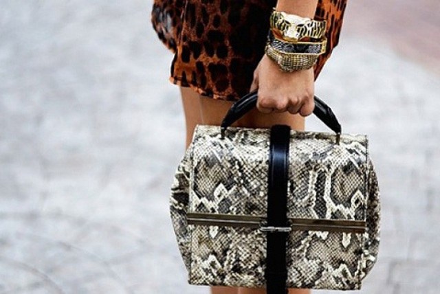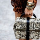A python bag looks especially attractive when some items of clothing repeat one of the main colors of the snake.
