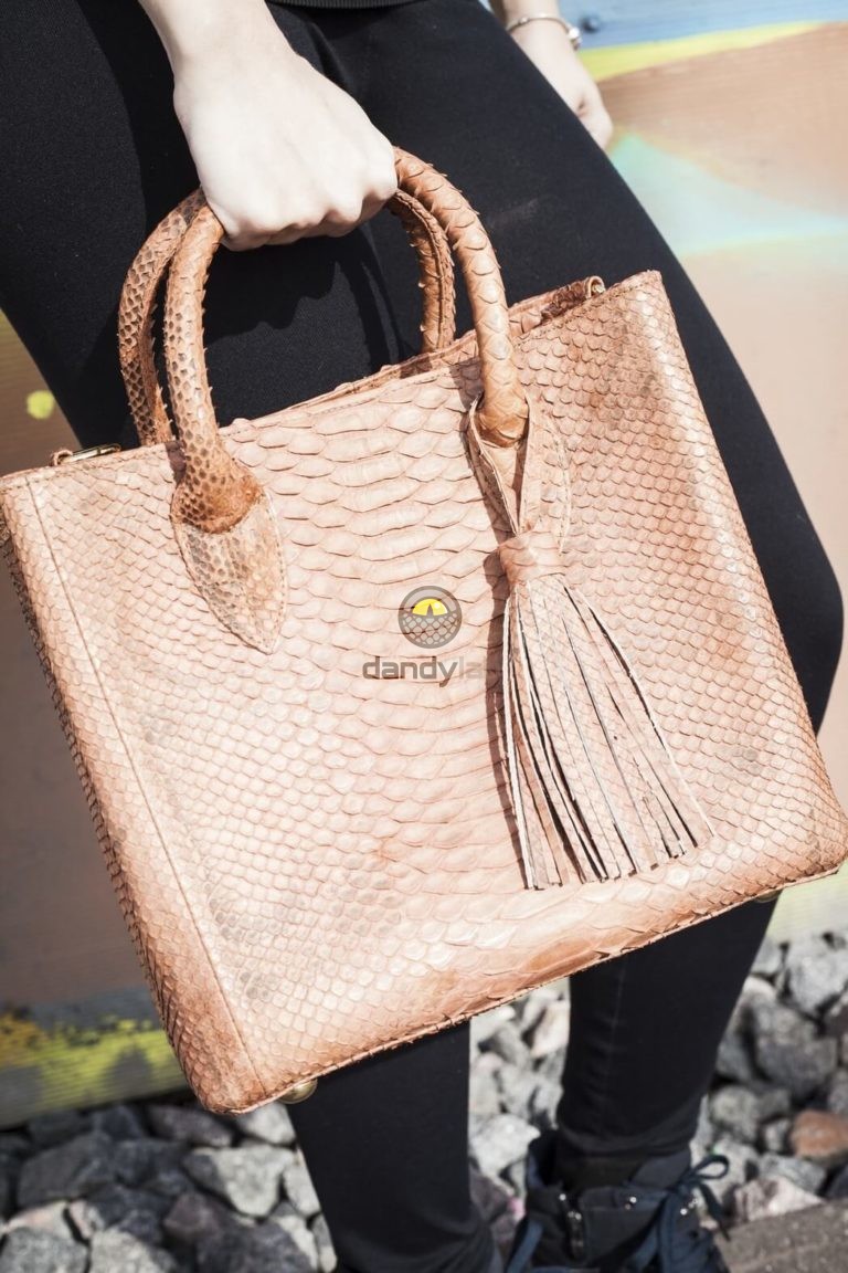 The snake skin pattern is unique and elegant. It is an inspiration for many manufacturers creating new fashion collections. Often you can find natural python skin, painted in any color. Modern technologies make it possible to create bags from natural material of any color. It is worth noting that this process does not harm either the structure of the skin or the quality of the product.