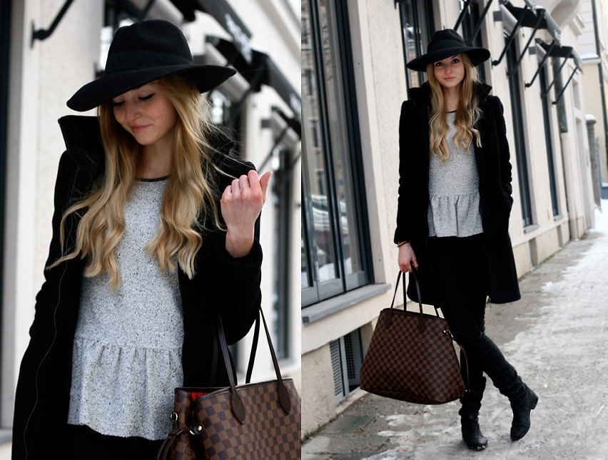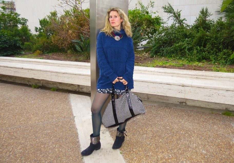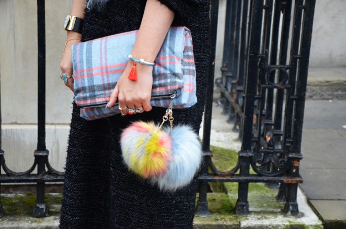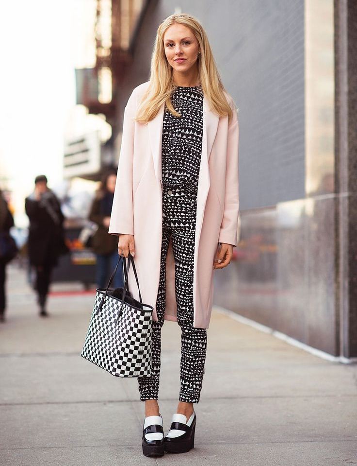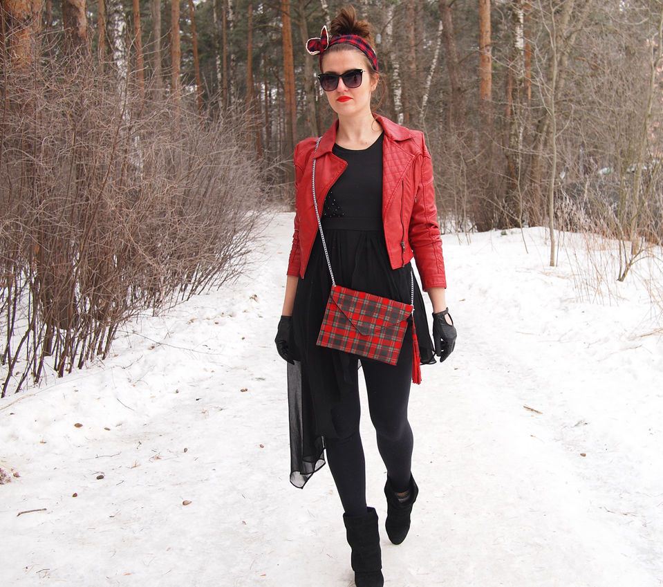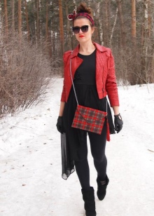 If the weather is cool in the yard, then you can complement with a charming accessory a straight or fitted coat and high boots. You can complete the ensemble with a checkered scarf or a beautiful hat.