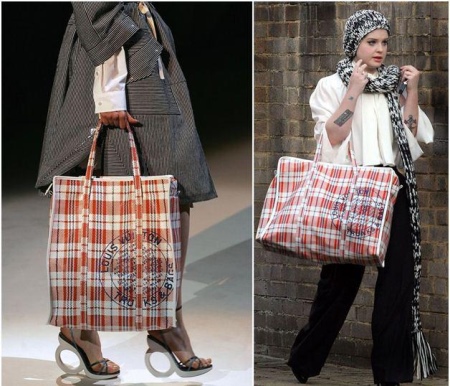 The cage is the most common print for women's bags. We saw such accessories in childhood. They flashed in stores, markets and train stations. This drawing decorated everyday products, travel and shopping bags.