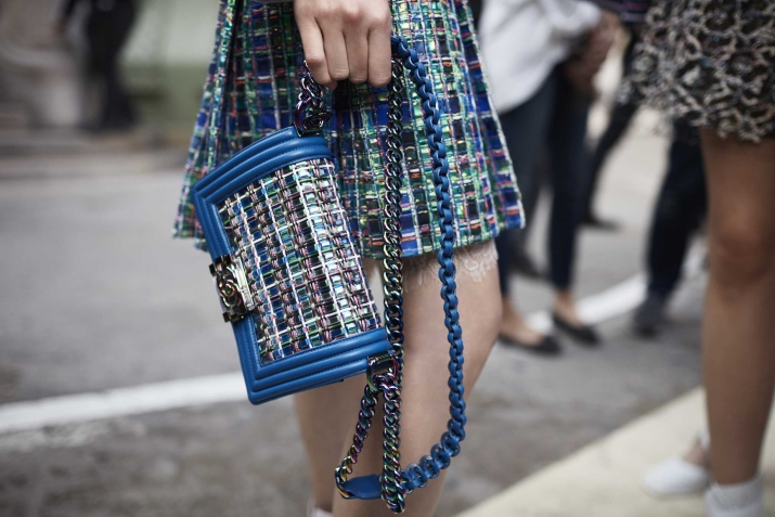 - Awesome cell looks on handbags, baskets. These products have an interesting shape. They taper to the top and look like a traditional basket. Such things are suitable for many ladies' images, from everyday to business.