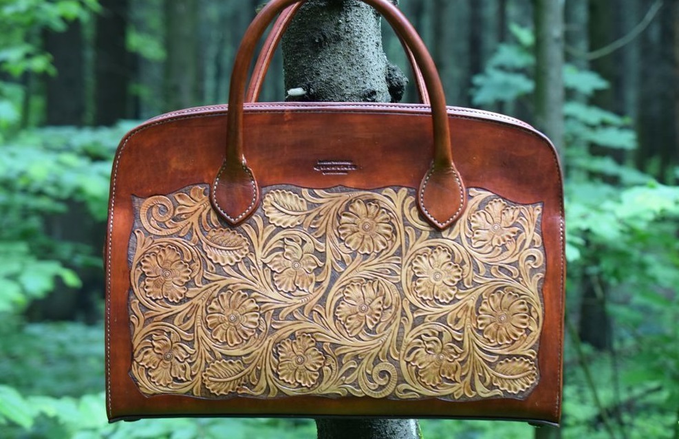In addition, the features include the fact that many masters actively use the embossing technique, decorative carving and perforation of the skin. Thus, a beautiful ornament appears on the surface of the bag without using even a drop of paint.