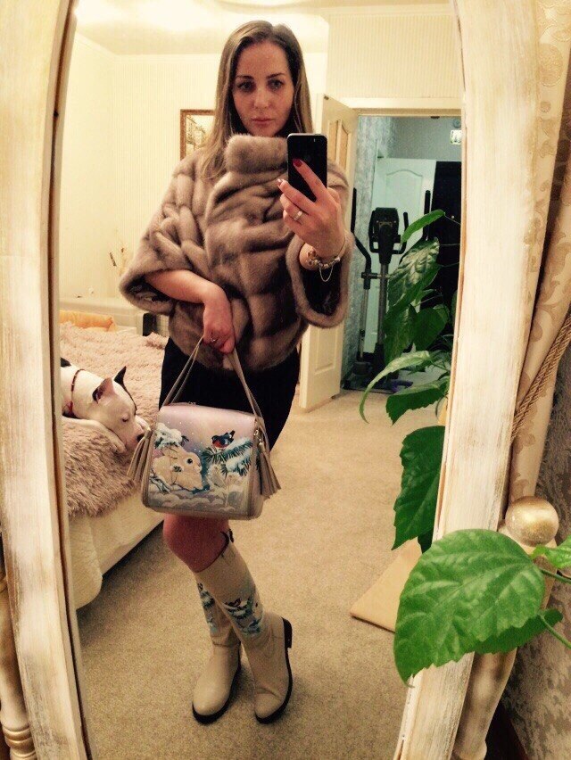 This stylish handbag - handmade reticule with an incredibly beautiful British style print will be a real find for true connoisseurs of such products. The model will perfectly fit into the dress, consisting of dark gray loose jeans and a shirt of a light coffee shade.