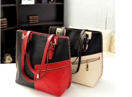Bags in calm colors look beautiful: muted gray, soft shade of coffee with milk, ivory and gray-pink. The main decoration of such models are inserts or stripes of bright colors - purple, orange, bright blue, emerald green and yellow.