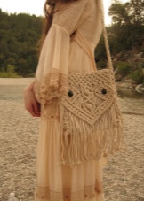 Macrame bag is very original and beautiful, there is a temptation to wear it without taking off, with all outfits. However, do not do this, remember the combination of styles! In no case should such a bag be worn with business suits or classic skirts. It will not work for elegant dresses.