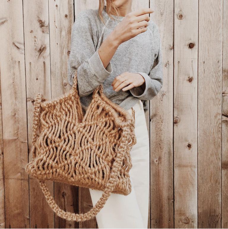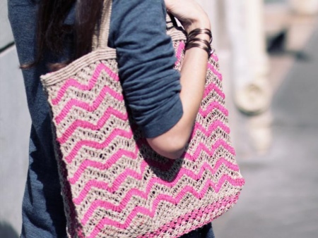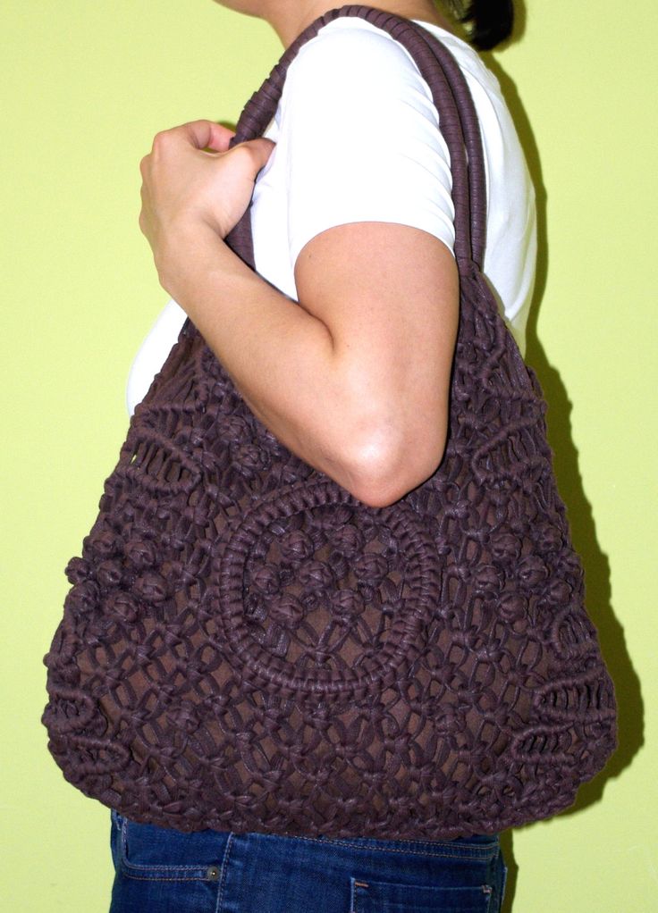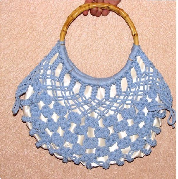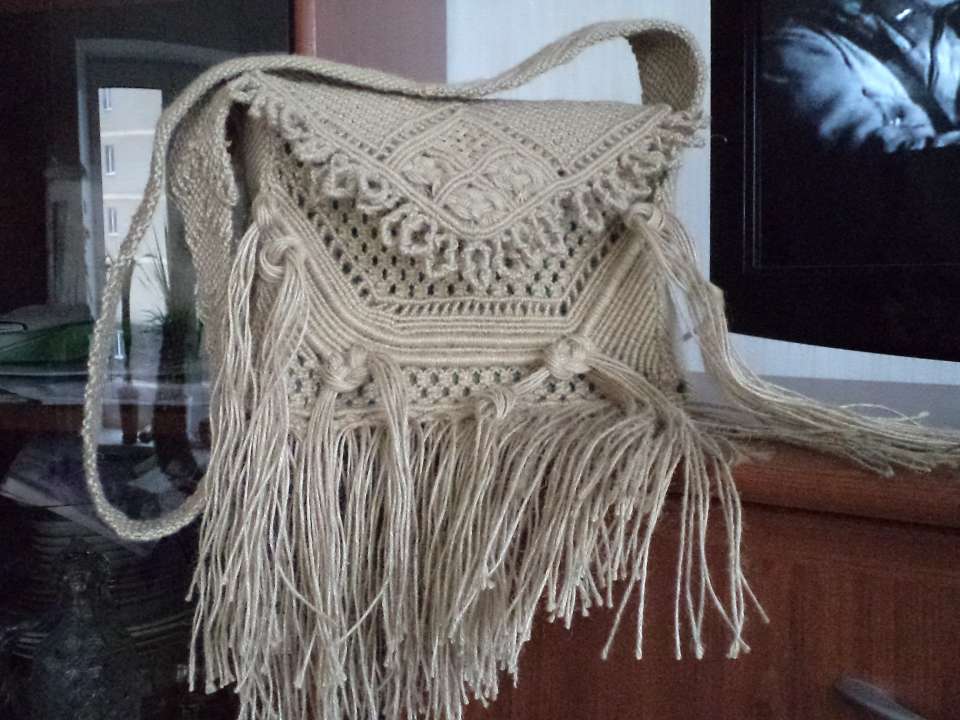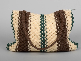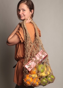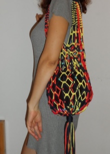 Another great option would be a large macrame bag. Most often, it is worn on the beach, and this is justified, because it is light, it fits in a towel, sunblock and so on. Such a bag should not be made openwork, it is better to take thick threads.