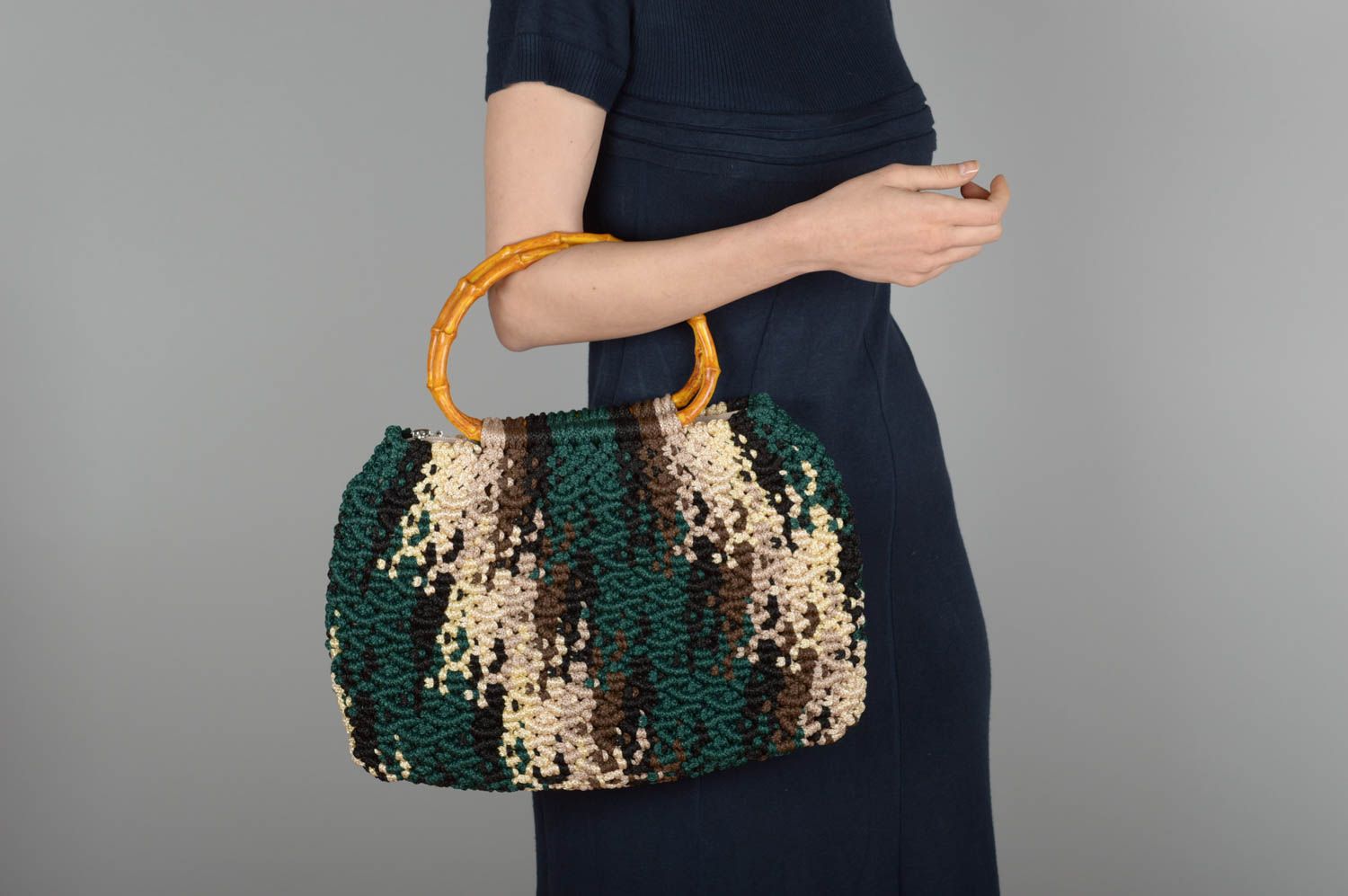 Handbag, made in the technique of macrame, will be a stylish addition to your image. All the necessary things for ladies will easily fit in there: keys, money, a mirror.