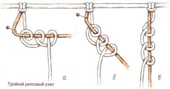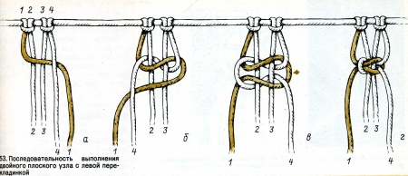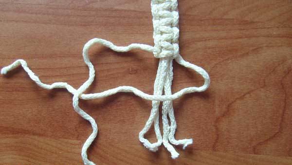 Distribute all ends of the threads into groups, each should have four. After weave a grid of square knots (do not worry, in fact, this is a simple double). The length and width may vary depending on your desire, but on average it is about 40-50 centimeters.