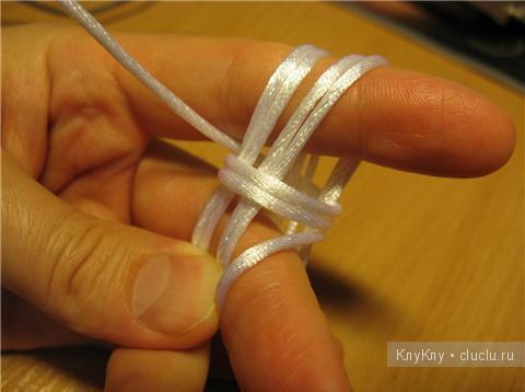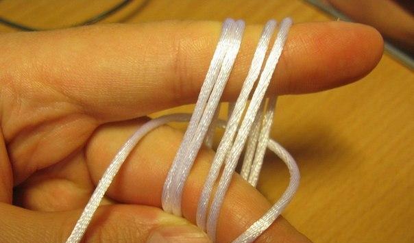 First, get ready to prepare: you need 17 strands long, somewhere around four or five meters each and one strand, which will be the basis. It should be longer than the rest of the thread about half a meter. Fold the base in half and place on the table, carefully securing. The remaining threads also fold in half and secure at the base. It will turn out 36 ends (including the two ends of the folded base).