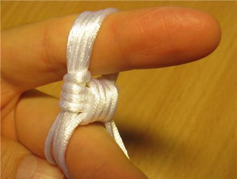Perhaps this part will be even more difficult than the main work. Choose which part will be the back and find the middle on it. Take 2 strings (20 and 40 centimeters), fasten at the top. The small thread is the basis, the other is the working one. Braid the main thread with knots, and cut off the end. Then fold the rope in half and attach the end.