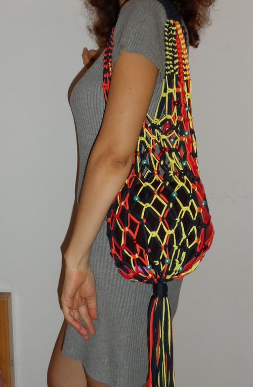 Weave it easy, because you do not need to completely cover the surface of the bag with knots.