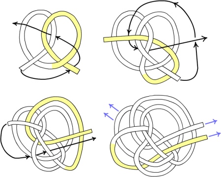 From the inside out, steam off the resulting net (the nodes are convex on the front side) and start weaving the “sides” of your bag.