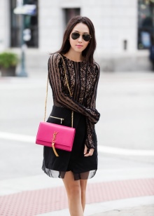 Some designers call for wearing such a handbag in a pair, along with a more voluminous option. They can be combined not only due to the unequal shape, but also due to the different length of the strap.