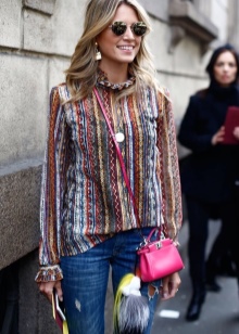 Each style dictates its own rules. For casual best suit simple plain bags of bright colors. Designers are advised to take bags in matte or regular leather.