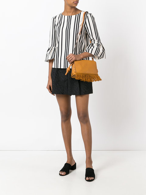 Fringed accessories are back in our fashion from the distant 70s. In the days of hippie fashion trends tended toward diversity and electricality. But today, these accessories are not only semi-circular shape. For example, Loewe showed in the new collection how to successfully combine the aesthetics of minimalism with boho-chic. The fringe in the collection of this season decorated rectangular bags in metallic and gold.