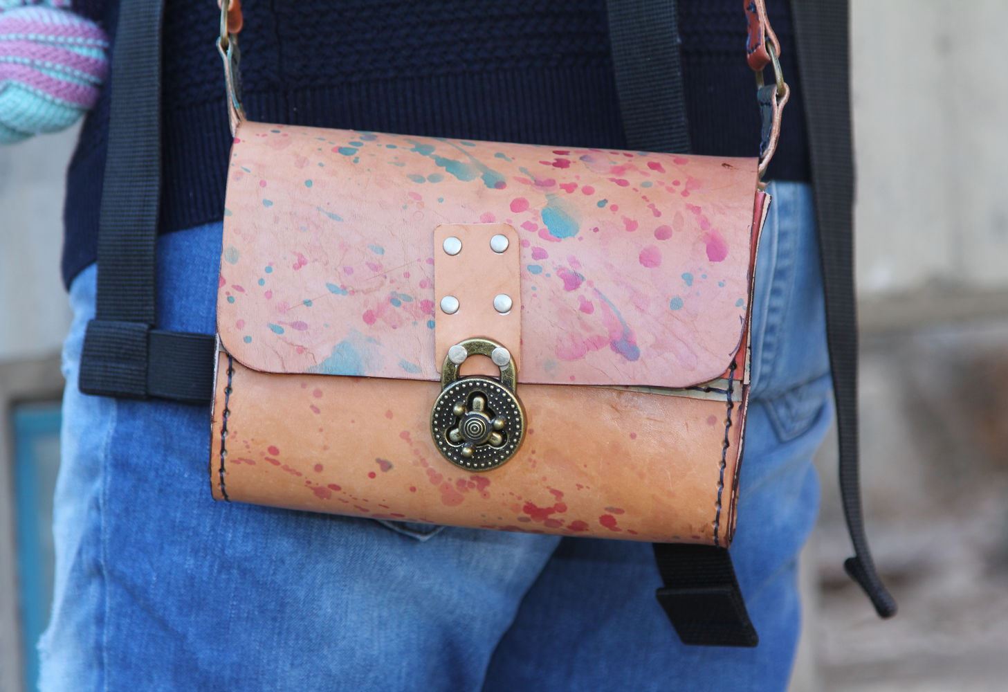 - The next step in choosing a small bag "cross body" - material. Among the natural best to use leather or suede. However, the latter material is much more capricious than genuine leather.