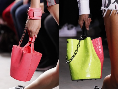 One of the unique bags-pouches is a model from Alexander Wang. In the new model you will not find boring and annoying colors, and this accessory also has a leather bracelet with a chain to the bag.