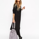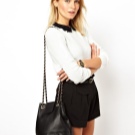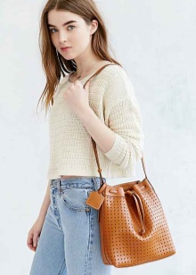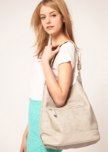 There are very original options with a shoulder strap. It is elongated, and besides it, on the upper part of the bag there is a denser and shorter handle. Such accessories can be worn on the shoulder or in your hand.