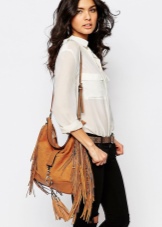 In the shops you can find such bags in which the laces are decorated with fringes on the ends.
