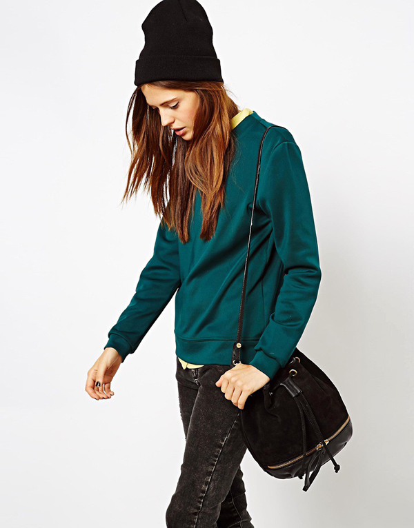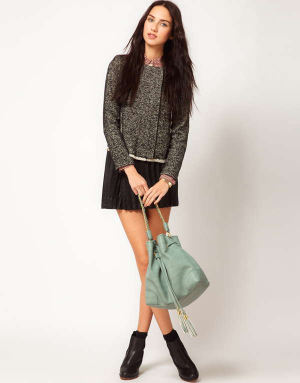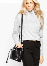 - For a cool demi-season, you can pick up a leather jacket or leather jacket and complement it with a bag in color. Such ensembles look very impressive. They can be both jeans or leggings, and skirts of various cuts.