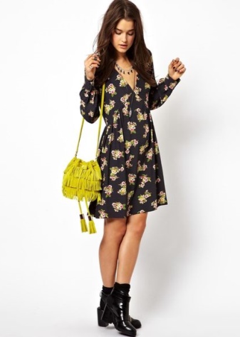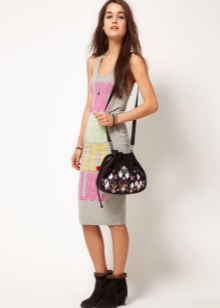 - No less harmoniously the bags are combined with women's dresses. They can be straight or fitted. Looks perfect outfits, consisting of light and flowing fabrics. These options are ideal for the summer season. Open-heeled sandals or flat sandals should be worn to your feet.