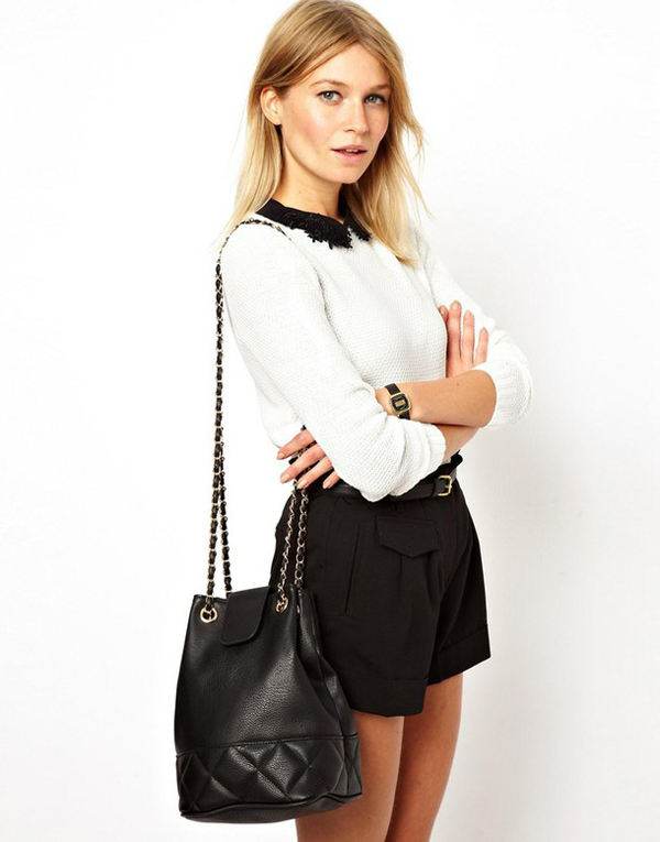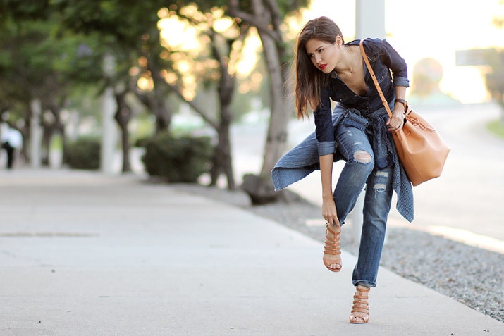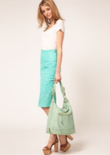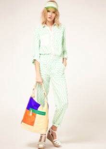 - Denim shorts, complemented by contrasting tops or T-shirts, will be another suitable option for summer. On their background, not very large handbags in color will look great.