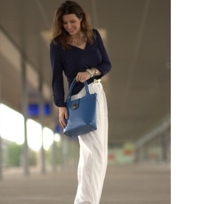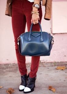 - When choosing a bag, no matter what color it is, the ability to combine colors is useful. The key word is harmony.For example, the blue color goes well with white and black, diluting the classic palette and turning a business image into a more casual one.