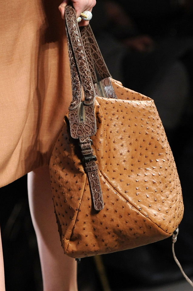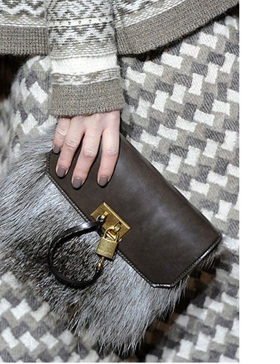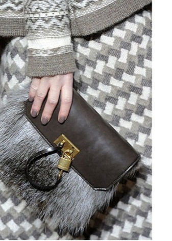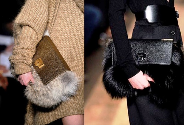 The main trend of winter is bags, made in whole or in part with the use of fur. Thanks to natural colors, they are perfect for almost any clothing. If traditional colors seem boring, you can play with the details again and add, say, to a simple beige bag with fur trim in the same shade of a bright belt as the Akris designers did.