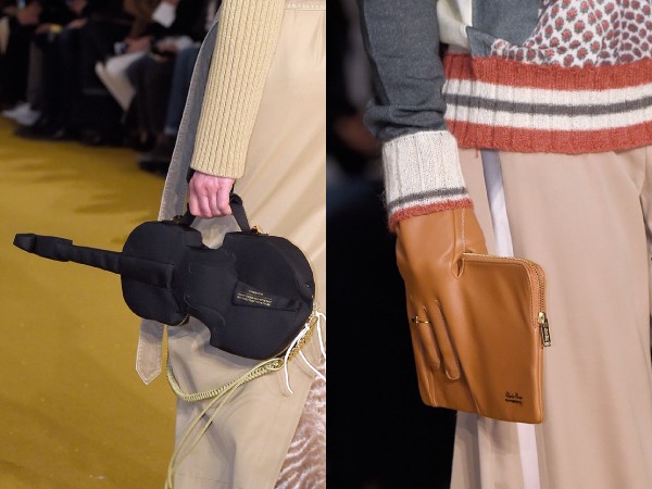 But those who like to shock the audience and attract attention to themselves, the designers were able to please. It is unlikely that many, for example, have a bag-reel with gold thread. It is worth paying attention to the collection from UnderCover - here there are bags in the form of a cover from a violin or a clutch glove - an indispensable thing for scattered girls.