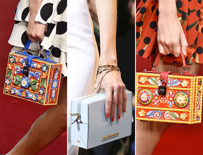 In the summer, girls prefer light, flowing materials of skirts and blouses, delicate pastel scales, draperies, and in order not to become a little cloud and fly away, fashion houses decided to play in contrasts and propose to such silhouettes the average sizes of rigid rectangular shapes of bright colors. This contrast is pleasing to the eye and gives the image completeness and integrity. The most stylish option is a small chest with a bright finish, decorated with sequins, rhinestones or metal fittings.