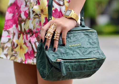 Floral motifs in the fall will not get bored in cold weather. A bright accent with this design will dilute the gray working days of dark coats, boots and umbrellas. The best way to extend the summer is to get a bag with a floral print.