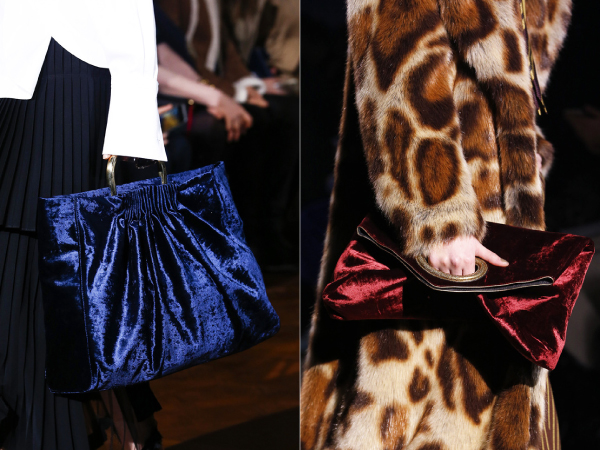 At the last show in Paris, Stella McCartney shared their discovery - bags with nap. Made from velvet fabrics, they will be equally stylish as stand out against expensive fur coats, which will contribute to the length of the pile, and beautifully contrasted due to the texture with smooth fabrics. And bright colors will create a festive atmosphere and will not let you get bored.