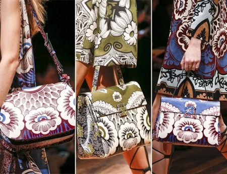 Dior went further and showed a total look - that is, a complete coincidence of the pattern and patterns on the bag and in the clothes. So the bag will be catchy, but not flashy, that will be appreciated by those who like to look unusual, but not vulgar or ridiculous. In order not to have to choose shades and ornaments on their own for a long time, many fashion houses offer to purchase sets at once - for example, a bag comes as an addition to a coat or dress.