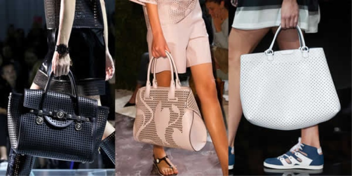 Bags with perforation - this is the perfect solution for trips to nature and the beach. Due to the small “airflow”, you can not worry about the state of wet towels on the way home. Such “holes” make the model easy and airy, and its owner seems ready to go on a romantic trip at any time.