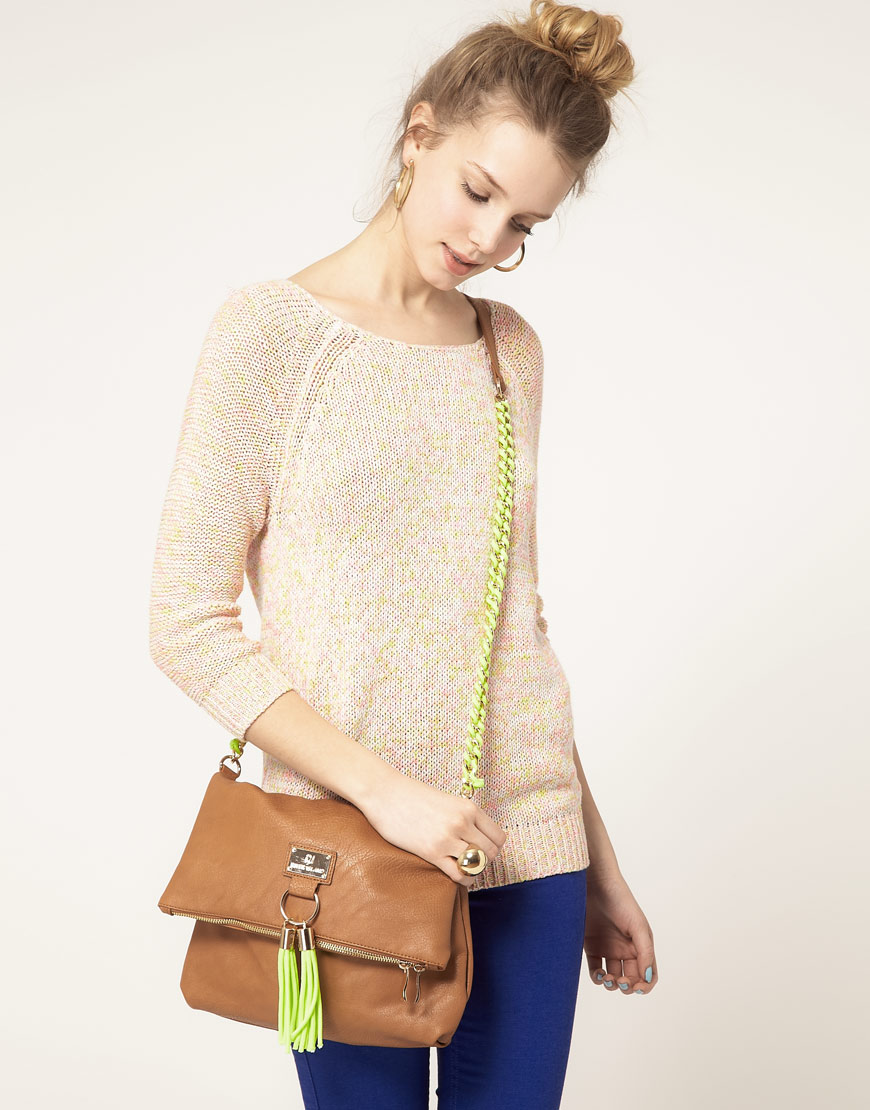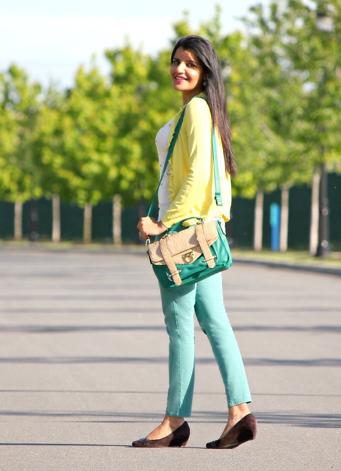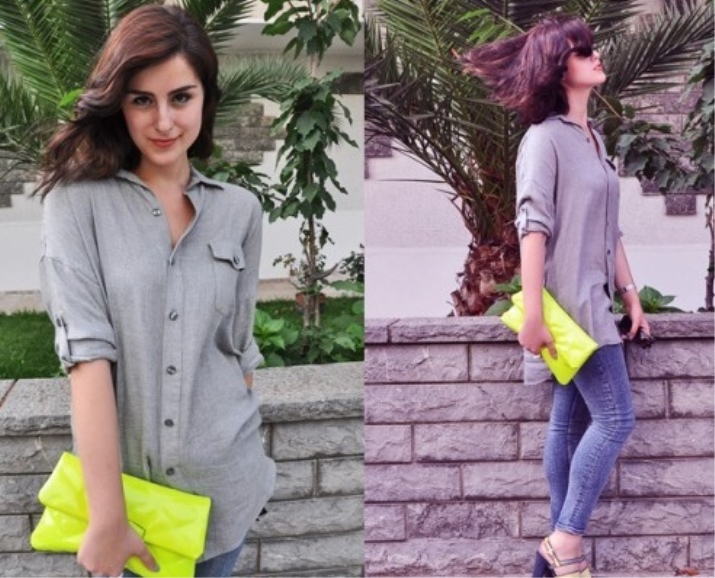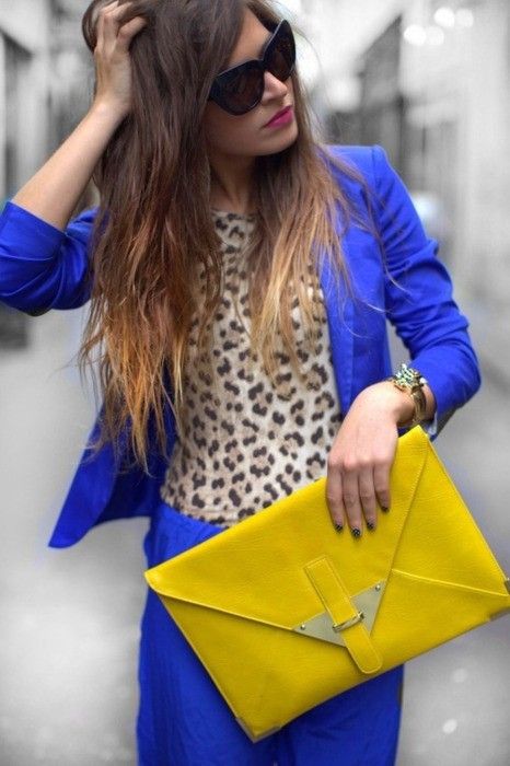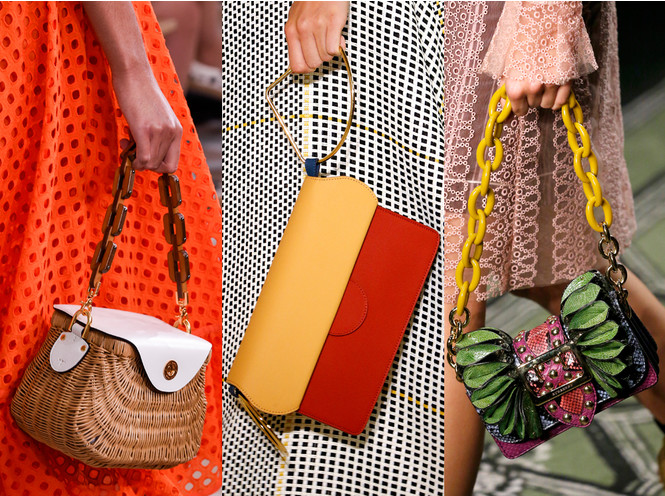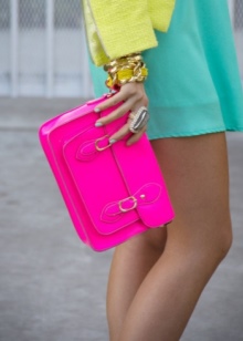 The motley yellow, orange, red, purple, blue and bright green things look especially attractive in the girl ensemble. An excellent choice could be a fuchsia bag.