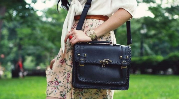 - Youth bags are combined with business images. Just try to choose strict models of leather. They should not be bright and variegated. They can complement business suits and a set of white shirts with a pencil skirt.