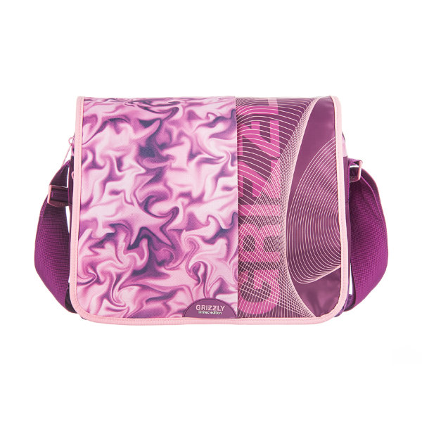 - The brand Grizzly is insanely popular. Under the name of this brand produced portfolios, big bags and backpacks in the youth style. They are decorated with bright drawings, colorful cages or butterflies on a bright pink, black, blue or purple background.