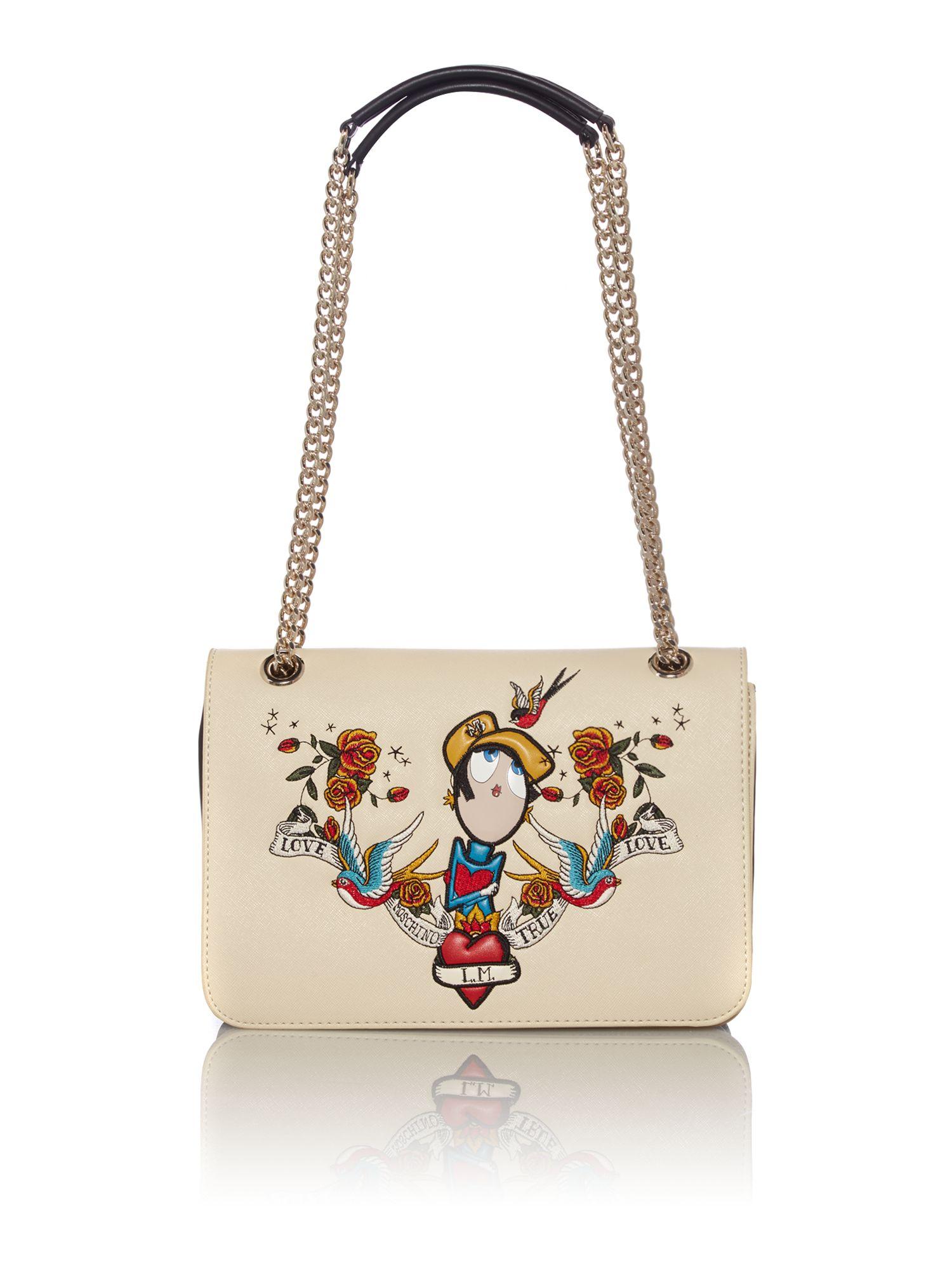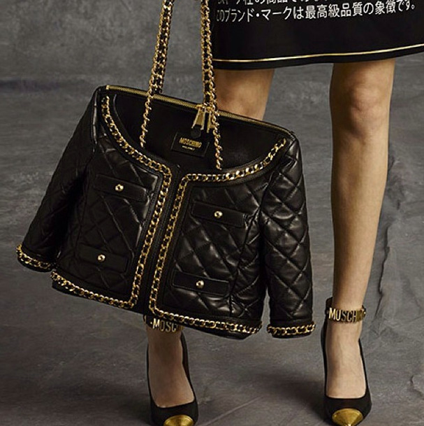 Many are made in the style of Chanel is a variety of styles of bags with branded stitching, complemented by a handle-chain and Moschino brand logo.