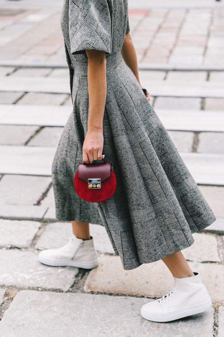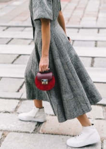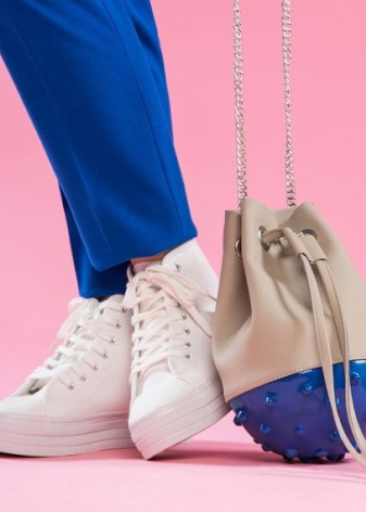 It can be combined with shoes as a heel, and on a flat sole. Modern fashion is so democratic that a handbag on a chain will even fit shoes in a sporty style, for example, casual sneakers.