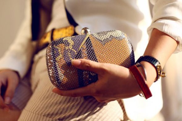 This is a small evening bag that has a rich decor and is distinguished by an elegant finish. It can be a classic form or be made in the form of a fruit, animal, bird. A great example is a duck-shaped handbag, presented by beloved Kerry in the series Sex and the City.