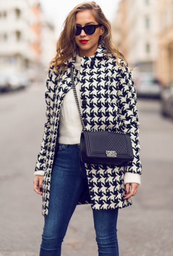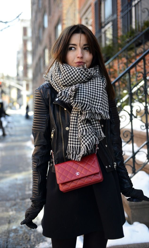 In the autumn, the bag on a chain will look spectacular with a matt-leather leather jacket, a bomber jacket or a woolen coat. In winter, it will complement the images with a fur coat or elongated fur vest.