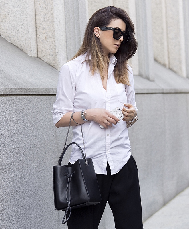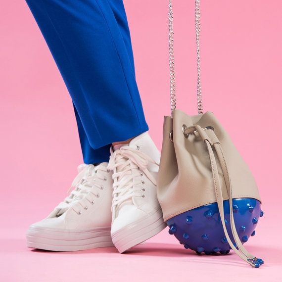 The bag-bag (in the English language Bucket Bag) is a peculiar interpretation of the soldier's knapsacks, embodied in the female fashion. They have a rounded bottom, open top, which is tightened on the strap and a long handle.