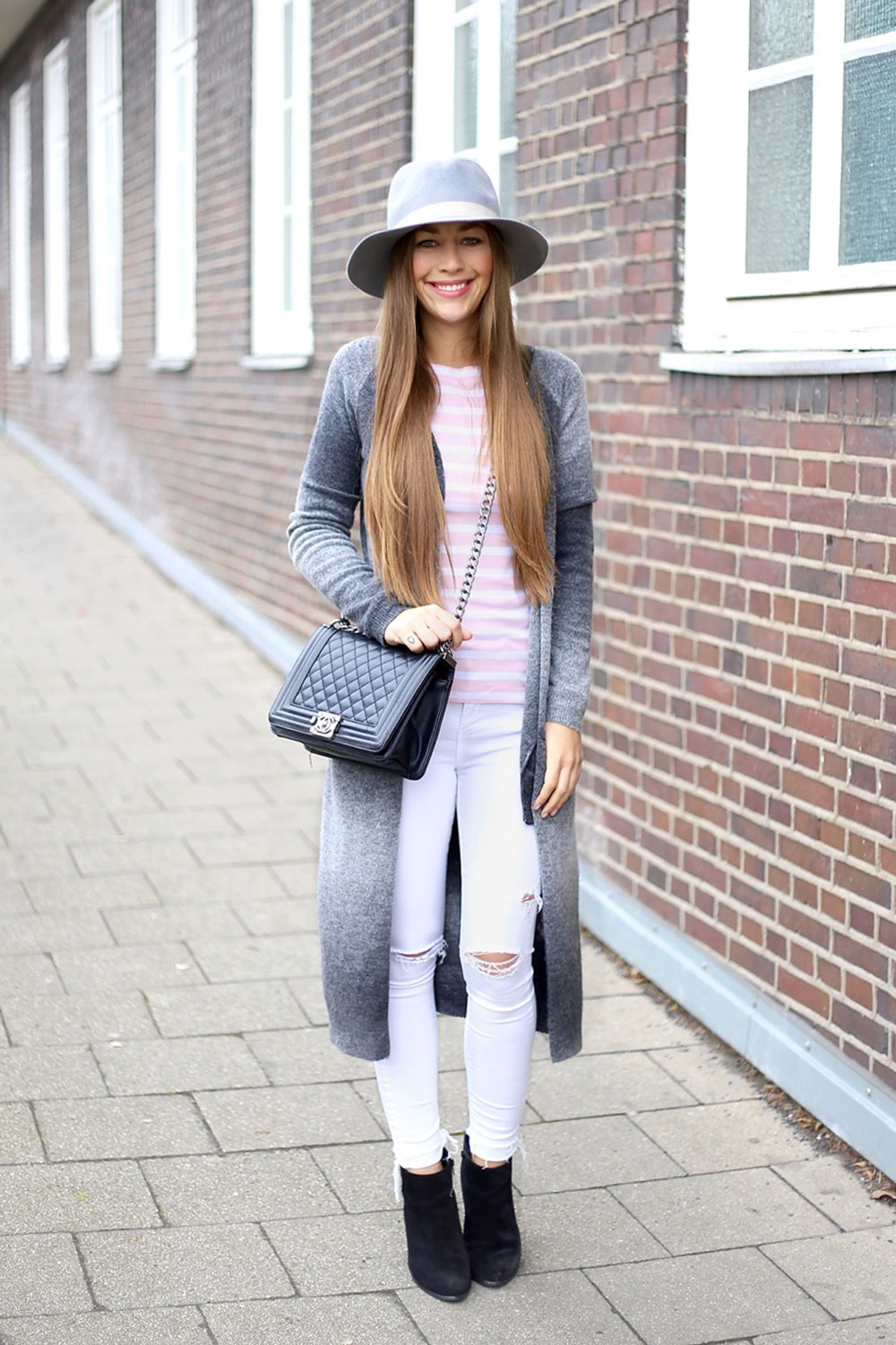 In casual looks, it can be combined with simple jeans, loose T-shirts or sweaters, complementing your look with an elongated vest, cardigan or leather jacket. To make the image look complete, add a scarf or hat to it.