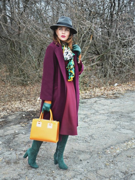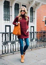 If you buy a bag for wearing in winter time, then it will be fashionable to wear it with outerwear in classic colors. Also suitable for milky, ivory, beige. Leather accessory looks good with fitted leather coats and a jacket. Suede will be in harmony with the top of the drape, tweed and cashmere. But you should not be limited to only classics - a blue, green, purple coat looks no less attractive.