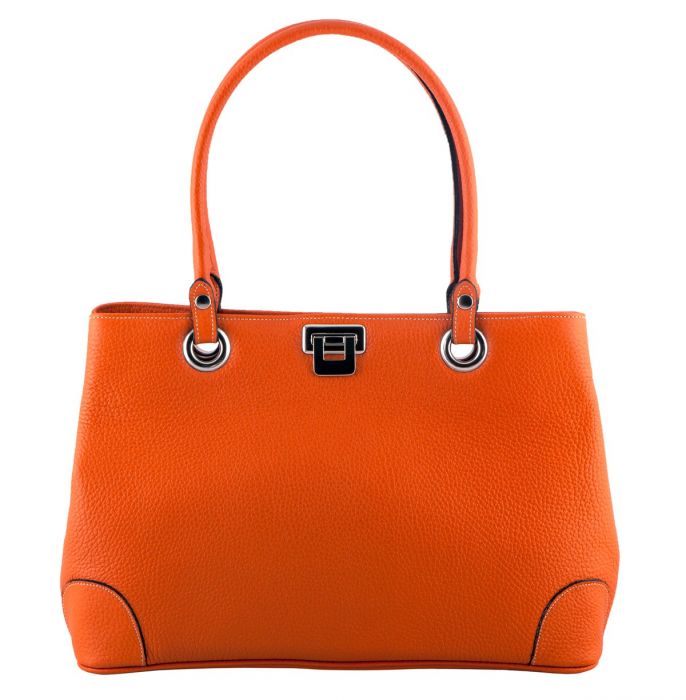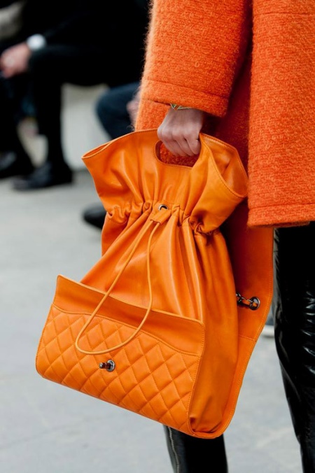 When buying an orange handbag, it is important to know what colors it fits best with. Of course, the classic white, black and gray tones are out of competition; orange here will sparkle with new colors. But this list does not end there, the handbag is perfect for yellow, red and pink. It combines perfectly with a cool range - blue, purple, turquoise, green colors. A good solution will also be to choose an image in the color of sea wave.