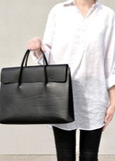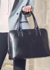 - Trapezoidal bags are the hits of recent seasons. Not so long ago, women's briefcases were also made in similar designs. They have short and long handles. Most often, these portfolios are equipped with rigid frames. Such things look good not only in business, but also in everyday sets. Fashionistas need only competently choose clothes of a suitable color.