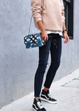 One of the novelties of the season was a miniature handbag in the form of a notebook, which is attached to the belt with the help of various semi-antique metal fittings. It is generously decorated with thematic symbolism, it can have a pattern made of metal in vintage style. Due to the thin strap, fastened to the belt, it does not lose, and thanks to a special metal carabiner, you can fix on the hips.