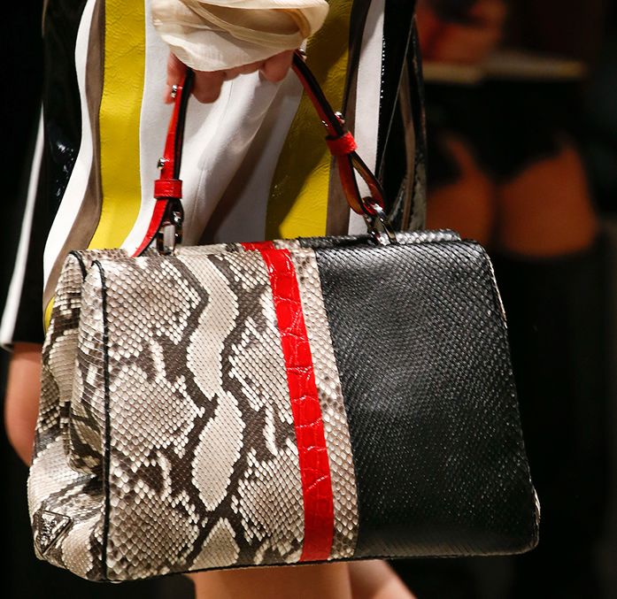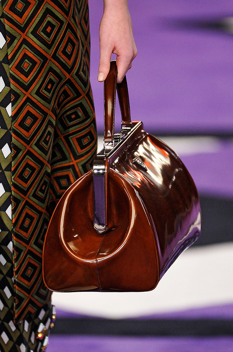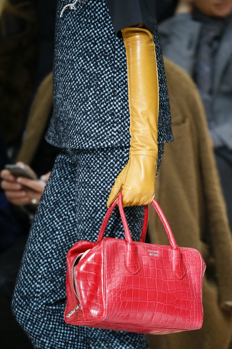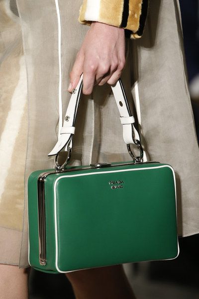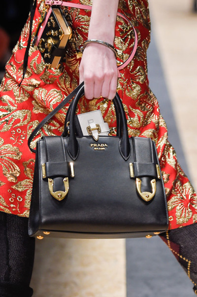 No less popular model bag, resembling a smaller version of the portfolio. It is worth paying tribute to the design of products: combining different contrasting inserts and the severity of the lines, the accessory looks impeccable and spectacular. This season, the chief designer of the brand Miuccia Prada is passionate about the theme of long-distance wanderings and treasure hunting, which is reflected in many models.